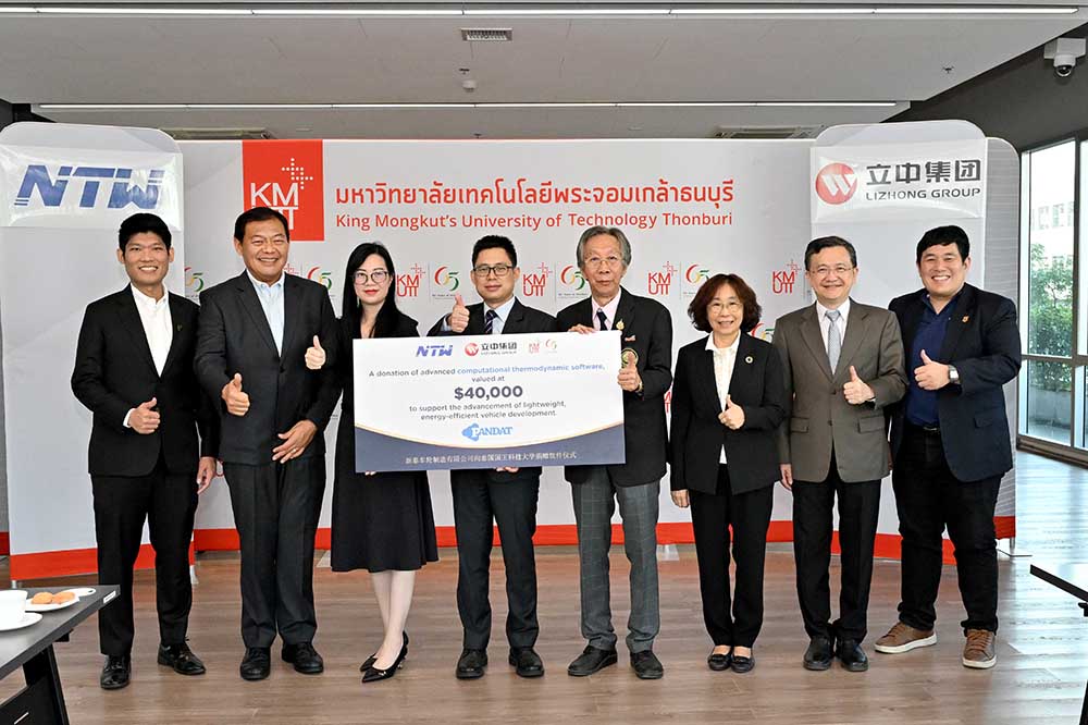 泰國國王科技大學(KMUTT)與新泰車輪制造公司(NTW)合作,借助先進的熱力學計算軟件提升鋁研究能力。 泰國新泰車輪制造有限公司(NTW)向泰國國王科技大學(KMUTT)捐贈了先進的熱力學計算軟件Pandat及其鋁合金數(shù)據(jù)庫,大大提高了其在鋁研究方面的能力。這套價值超過140萬泰銖的軟件將有助于推動汽車行業(yè)輕量化合金的研究。 交接儀式于2025年1月21日在泰國國王科技大學(KMUTT)舉行。校長Suvit Saetia接受了新泰車輪總經(jīng)理鄭勁松先生的捐贈。活動還邀請了工業(yè)與合作伙伴關系部副院長Montira Nopharat、學生與學者發(fā)展副院長及輕量化金屬研究組組長 Chaowalit Limmaneevichitr、生產工程學院院長Somporn Piansukmanee和Phrompong Pandee等主要教職員工參加。 國王大學和新泰車輪簽訂合作協(xié)議,共同合作研究汽車制造用的金屬輕量化項目,本次捐贈為合作內容的一部分。Pandat軟件在平衡圖仿真和分析冶金性能方面享譽全球。Pandat軟件使用先進的算法,可準確預測各種條件下的結構變化和材料行為。這種能力對國王大學研究鋁合金非常有幫助,特別是在開發(fā)輕量化、高強度、高耐久性和安全的鋁車輪方面。 通過Pandat軟件,國王大學研究人員可以更深入地了解材料行為,優(yōu)化合金成分和工藝參數(shù),減少實驗時間,降低實驗成本,將資源浪費降至最低,并且提高分析的精度。此外,國王大學將會將Pandat軟件加入到冶金相關的本科和研究生課程內,豐富學生的學習體驗。國王大學相信,其與新泰車輪的合作將為學術機構和工業(yè)部門帶來巨大的長期利益,促進泰國汽車行業(yè)的創(chuàng)新和可持續(xù)發(fā)展。